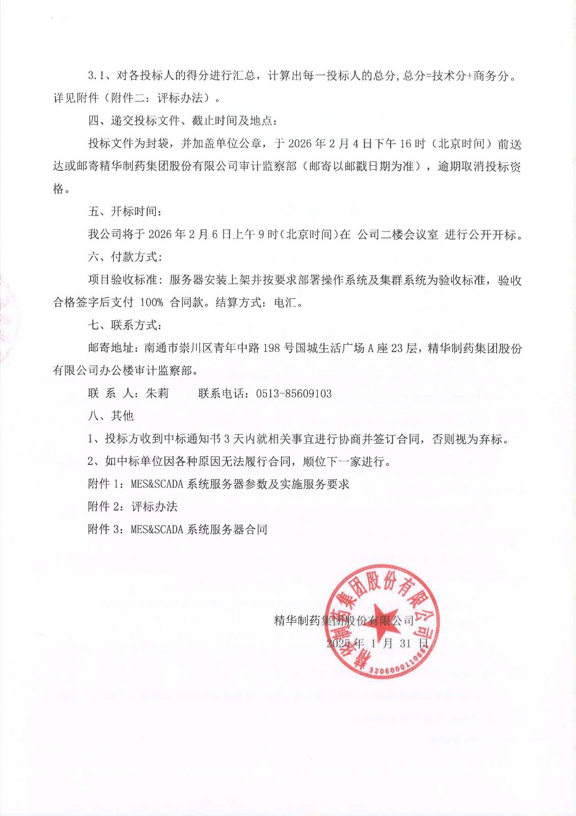 关于2026年精华制药MES&SCADA系统服务器招标,详见下图: